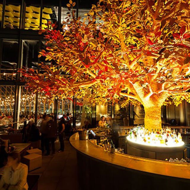 La cerise sur le gâteau ? Je l'avoue, la terrasse ! Car siroter un dernier cocktail au bar circulaire extérieur où se dresse un immense arbre, éclairé de milles petites lumières rouges dans les branchages… c'est finir la soirée en beauté